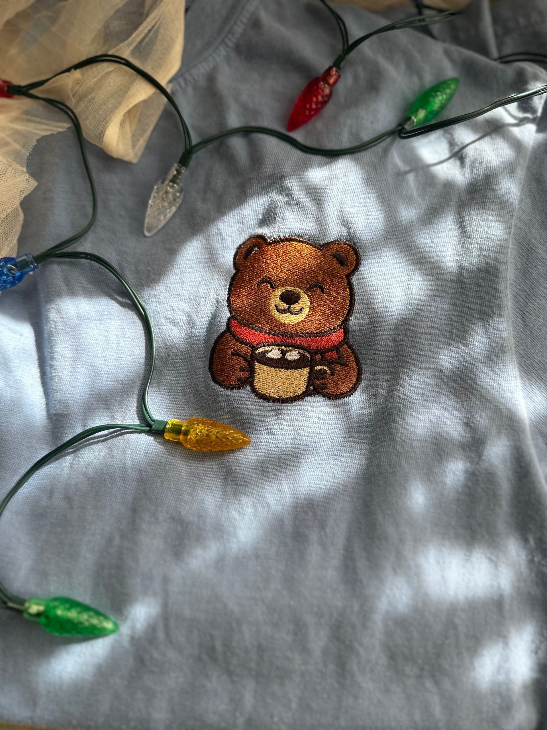 - Front: Bear Cocoa — a warm, stitched companion for slow mornings